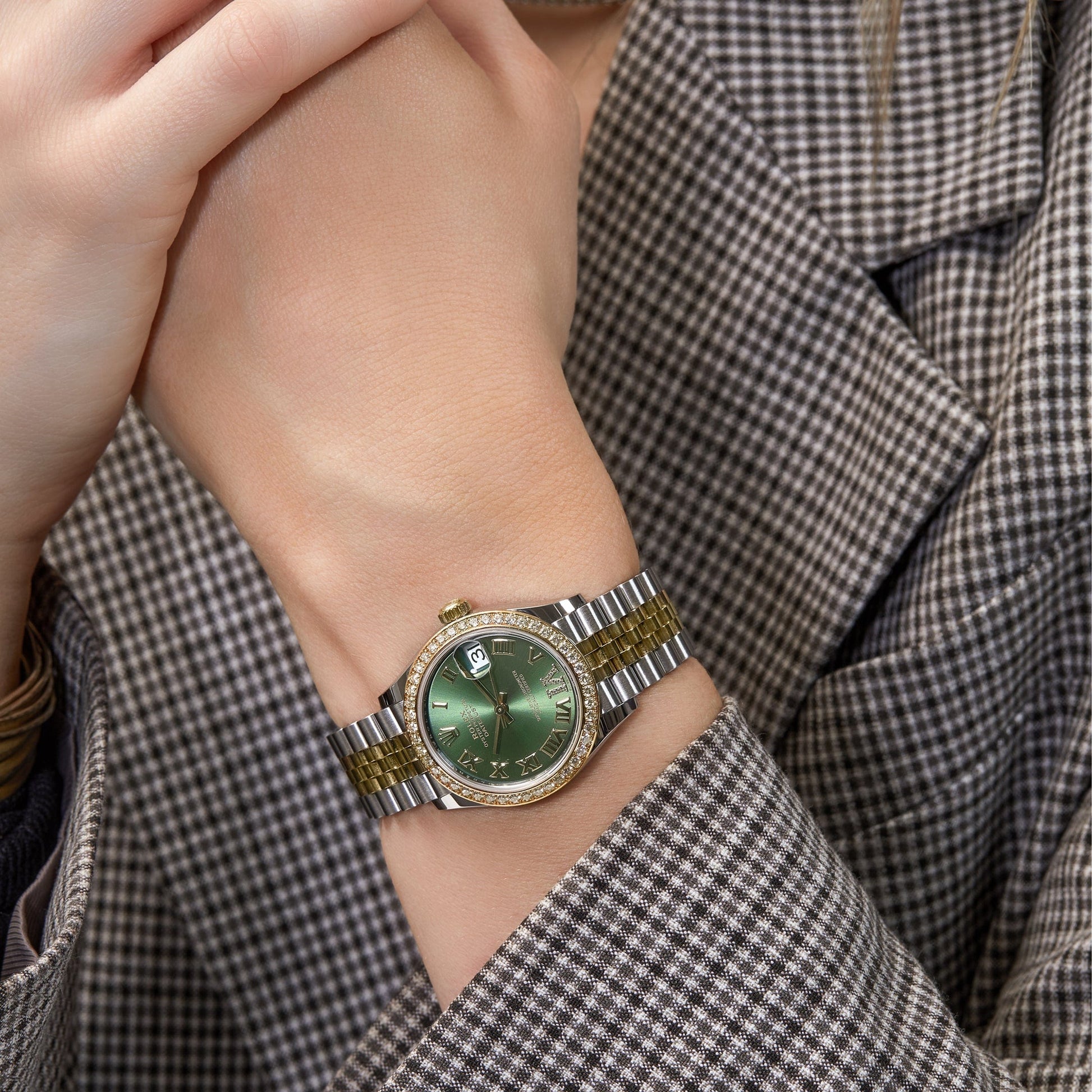 2025 Watch Datejust 278383RBR Two-Toned Yellow Gold Stainless Steel Green Roman Dial Diamond Bezel