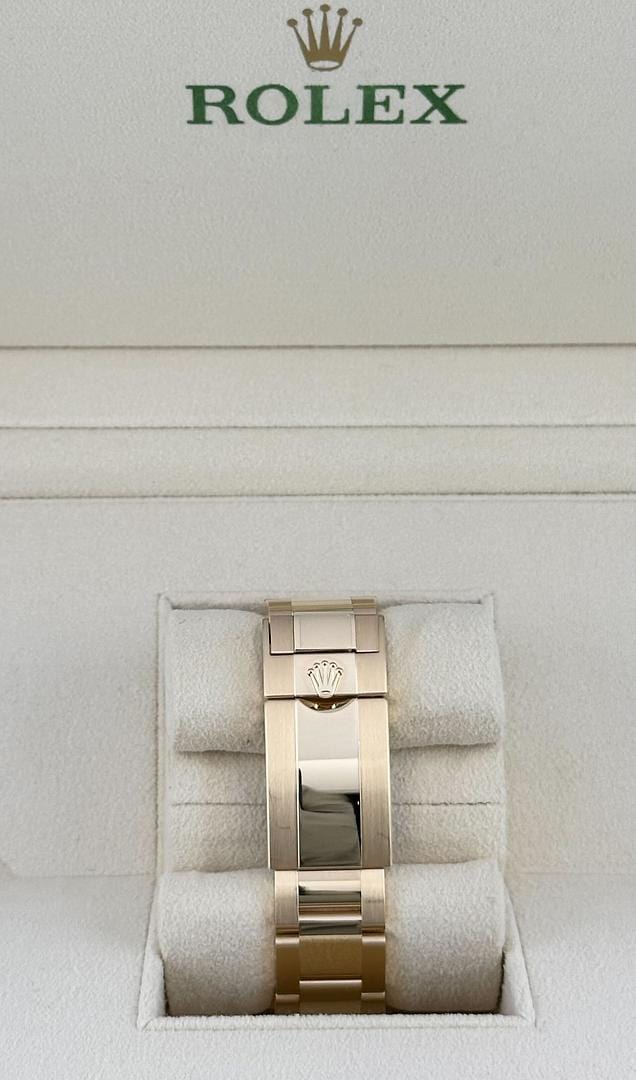The 2025 Watch Daytona 116508 is designed in 40mm 18k yellow gold. a meteorite?dial. and black sub-dials. Luminous hour markers and hands include a Chromalight display for optimal legibility. The bezel is engraved with a tachymetric scale and hosts the high-performance Chronograph. This golden grail can time a speed of up to 400 kilometers per hour and remains seen as the epitome of functionality meeting fashion.