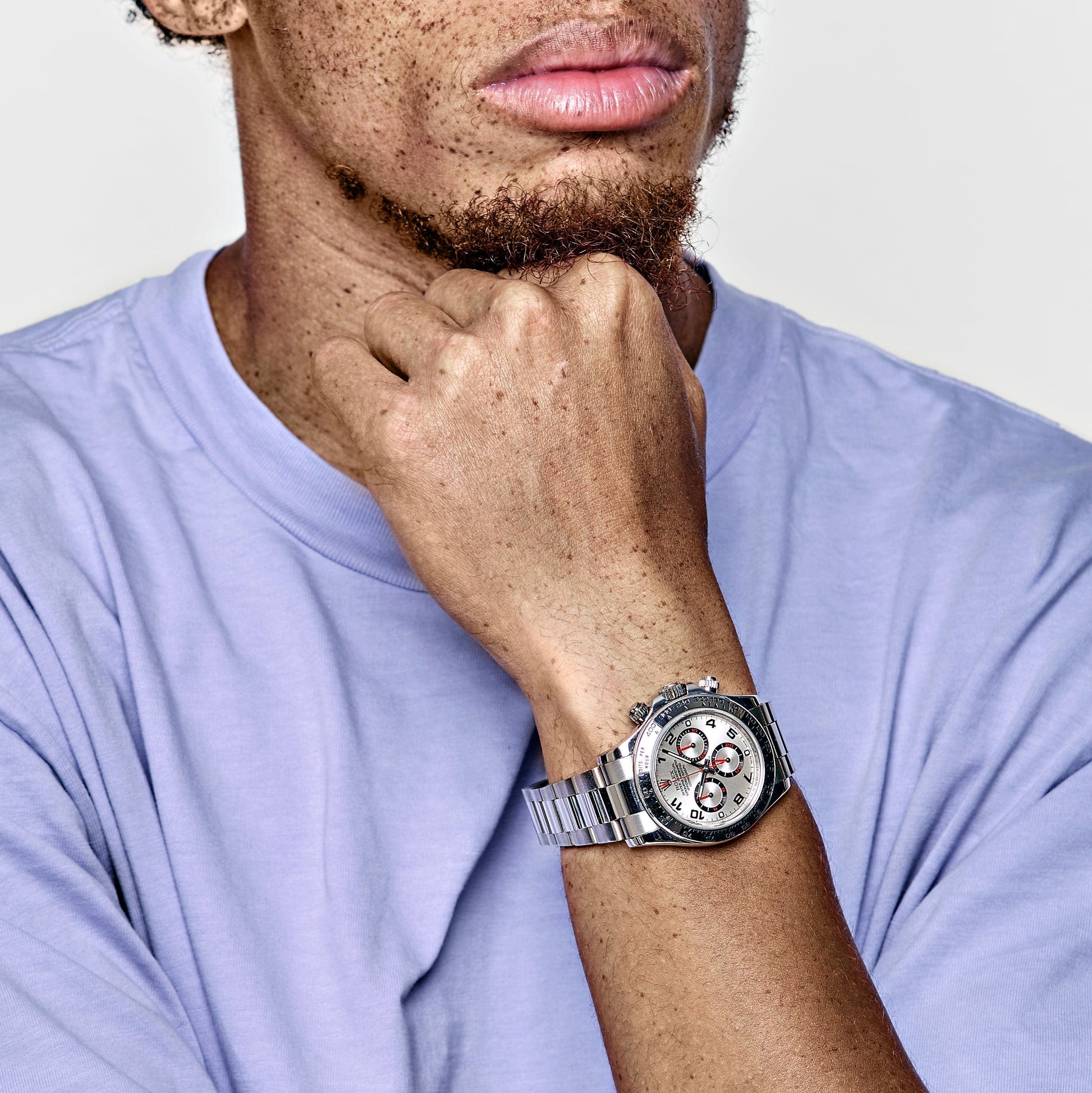 The 2025 Watch Daytona 116509 is an outstanding timepiece. radiating timeless elegance. It showcases a silver racing dial complete with chronograph counters. Featuring an engraved tachymetric scale. three sub-dials. and pushers. the Daytona was meticulously crafted to serve as the ultimate timing instrument for endurance racing drivers.
