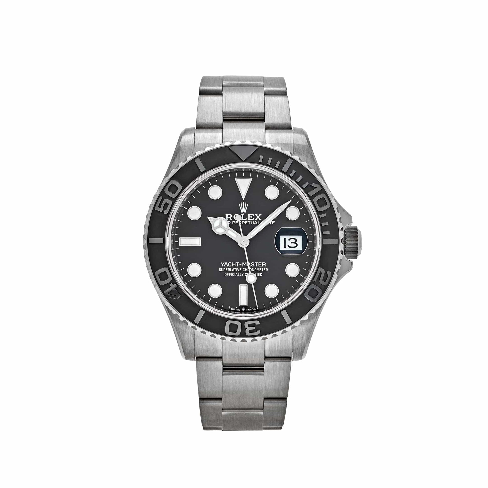 This 2025 Watch Yacht-Master is designed with a 42mm RLX-titanium case and black dial. styled on a matching titanium Oyster bracelet. Luminous hour markers. hands. and a Chromalight display provide clear legibility in every circumstance. Complications include a bidirectional 60-minute bezel. stop-time keeping. and water resistance up to 100 meters. The RLX Titanium material is ultra light and resistant to corrosion - which is perfect for extra-long dives and a lifetime of wear.?
