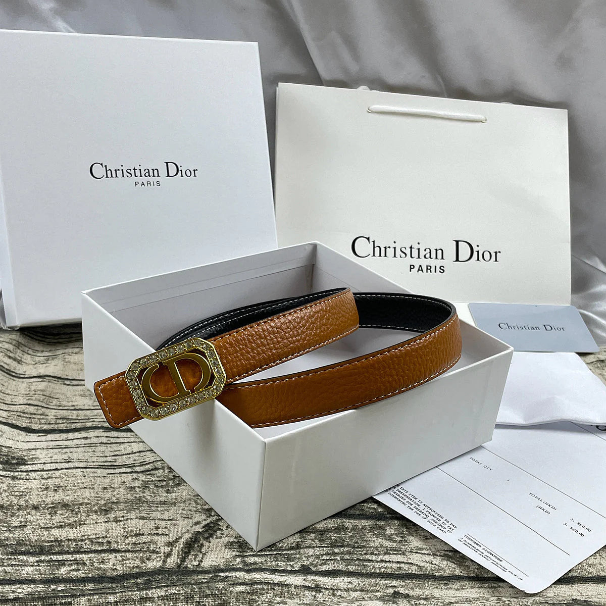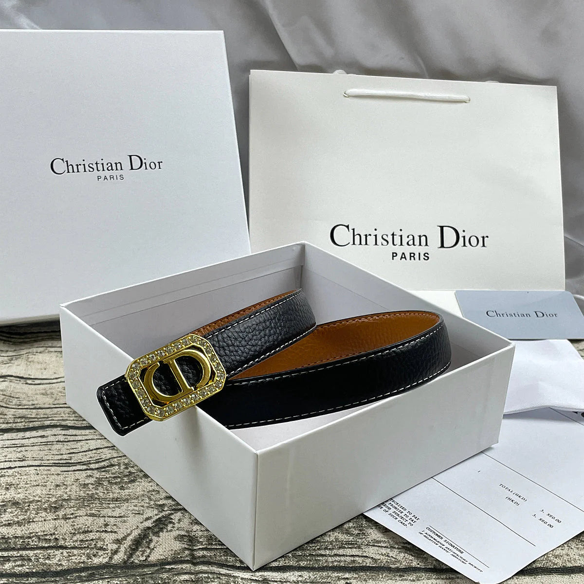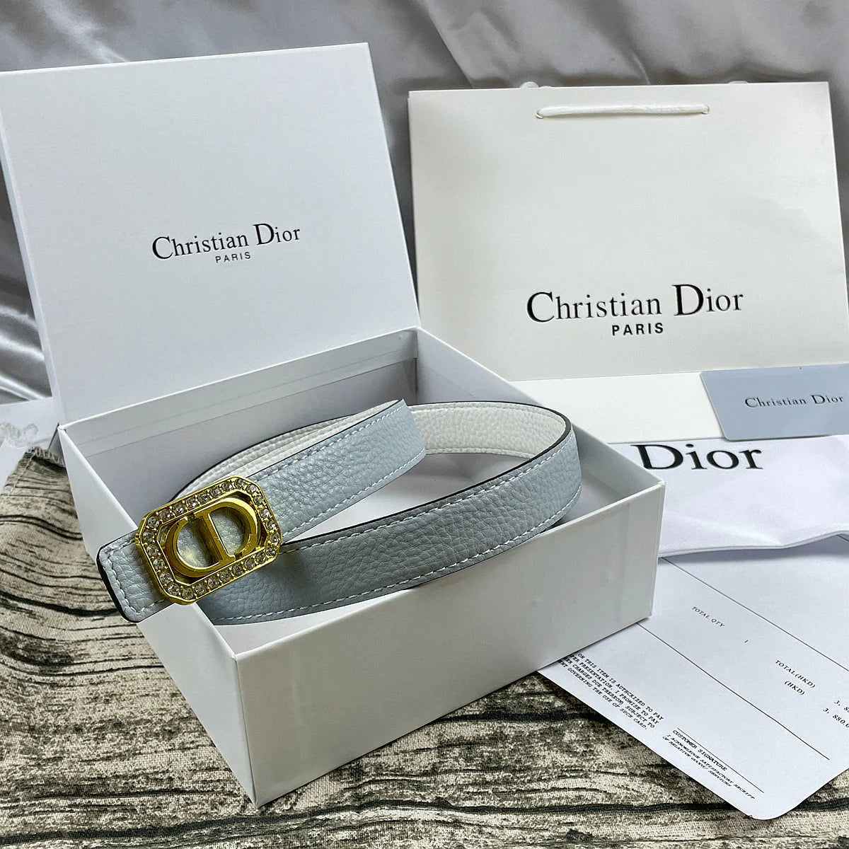 Product name: 6 color luxury rhinestone CD lychee pattern double-sided belt