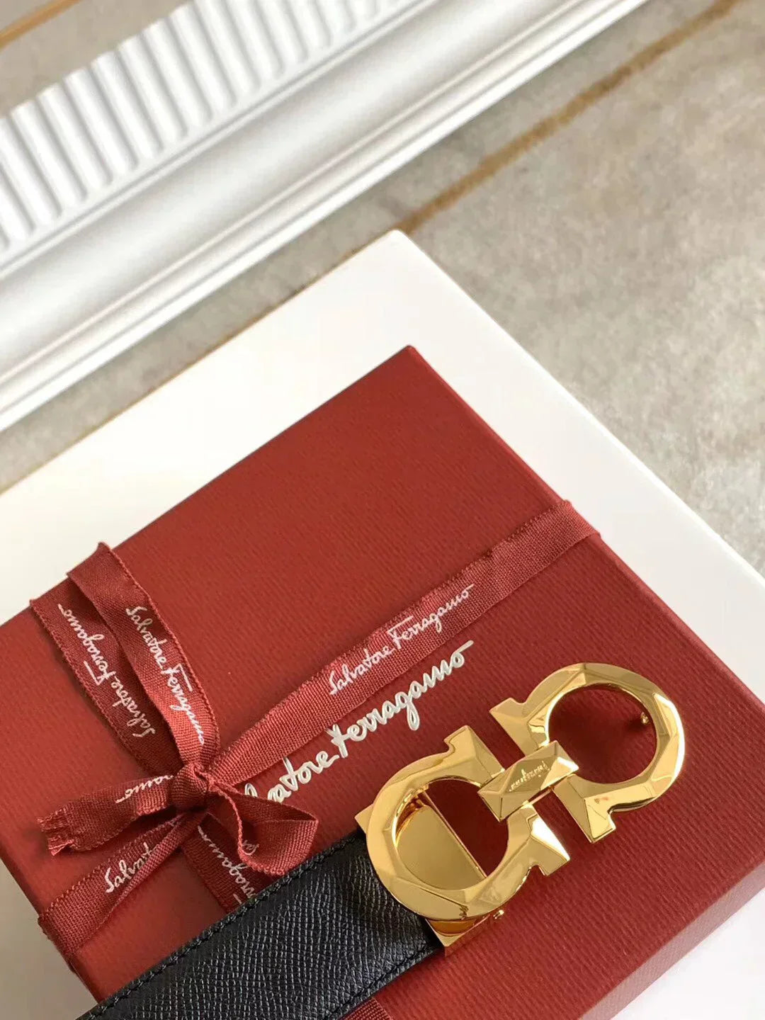 One of the brand's most coveted designs, this belt has been given a vivid update. One side of the belt features brightly colored calfskin. This inherently versatile piece is fastened with a polished buckle that complements the accessory's modern aesthetic.
