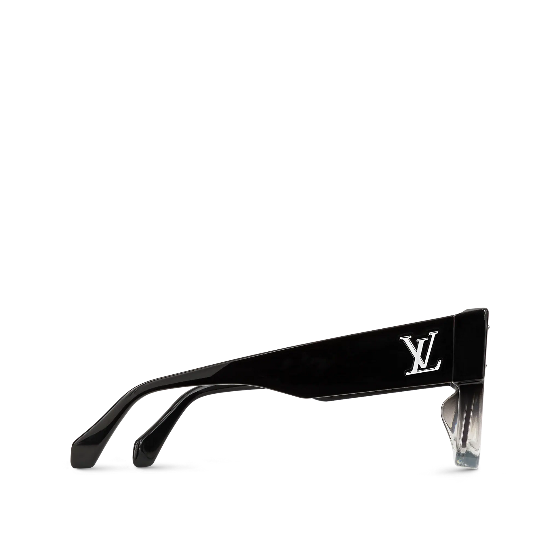 The Cyclone Sunglasses make a bold statement with their modern square shape and deep bevel. This modern design features lenses that are transparent at the bottom, matching the gradient colouring of the frame. A Monogram Flower composed of four crystals sits above the bridge of the glasses, adding a sparkling finish to this architectural piece.