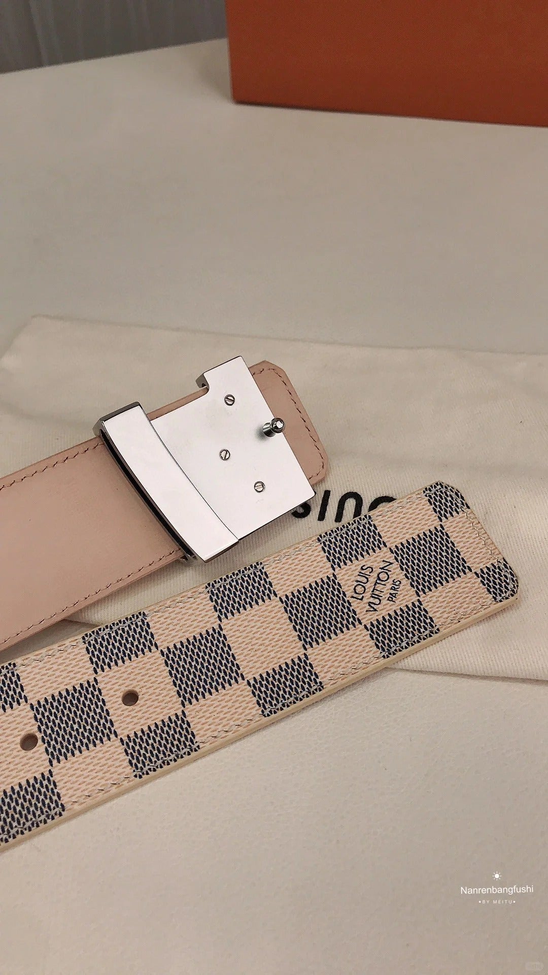 2025 Classic Silver Buckle White Plaid Men's Belt